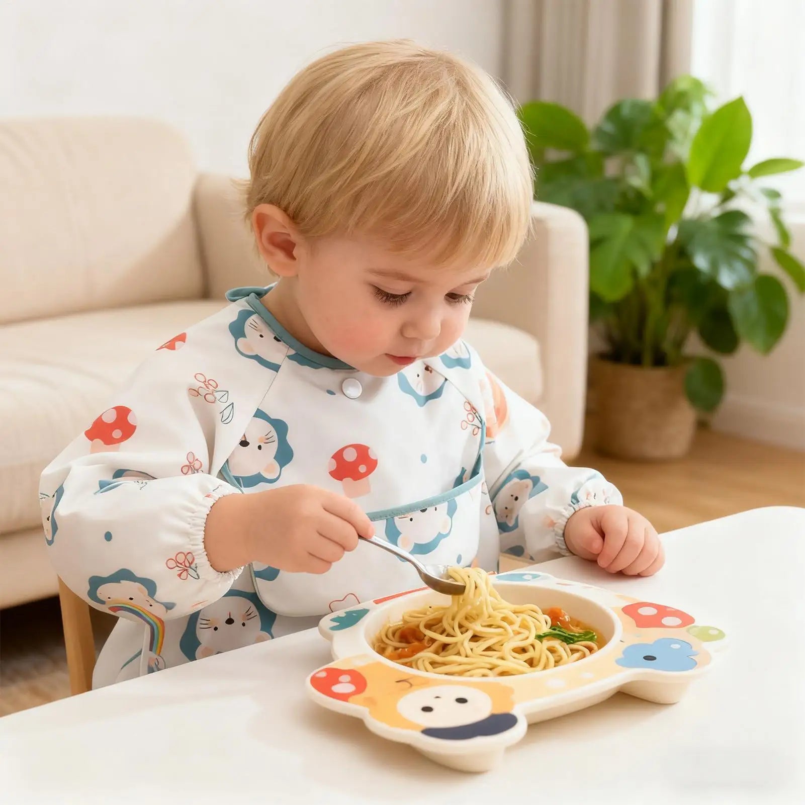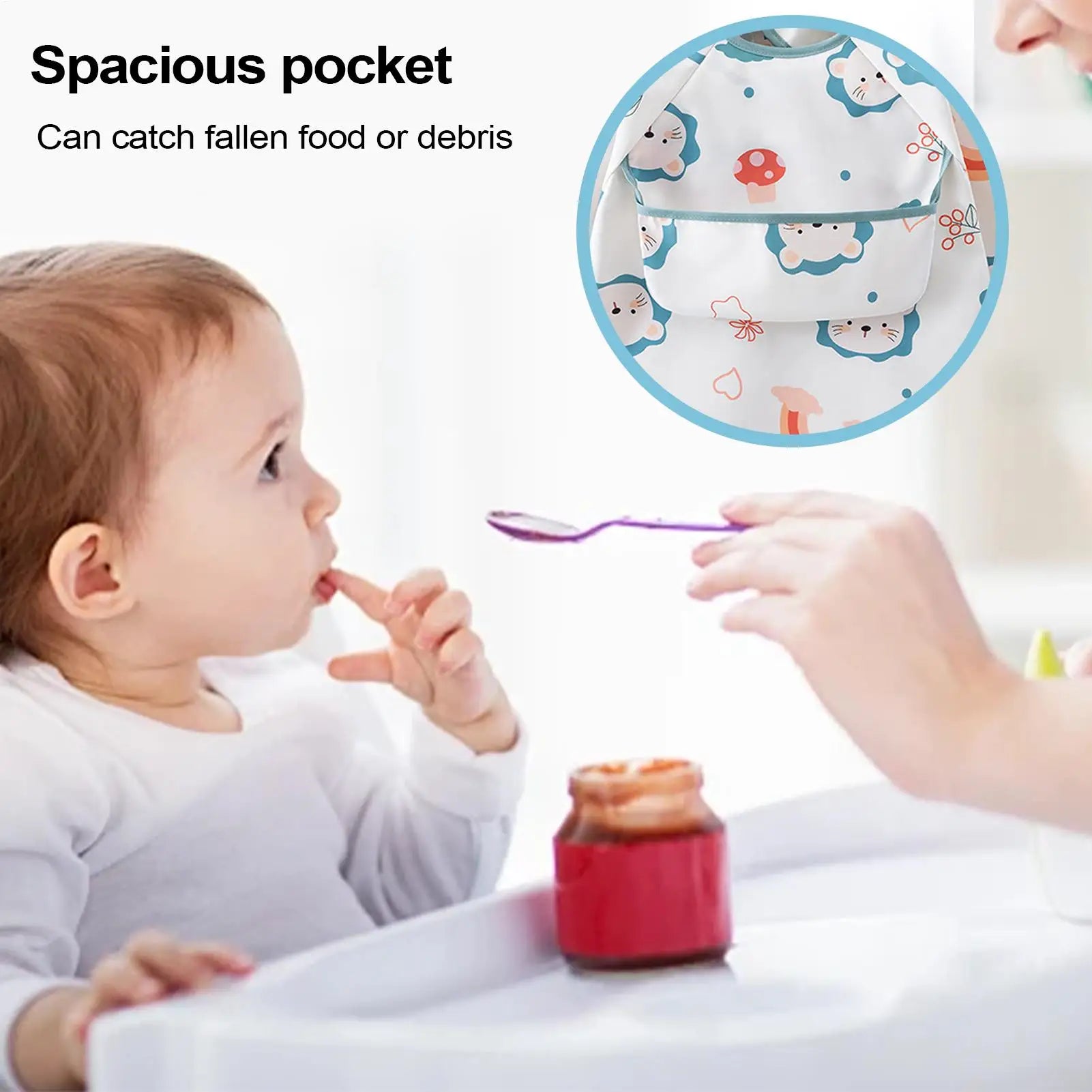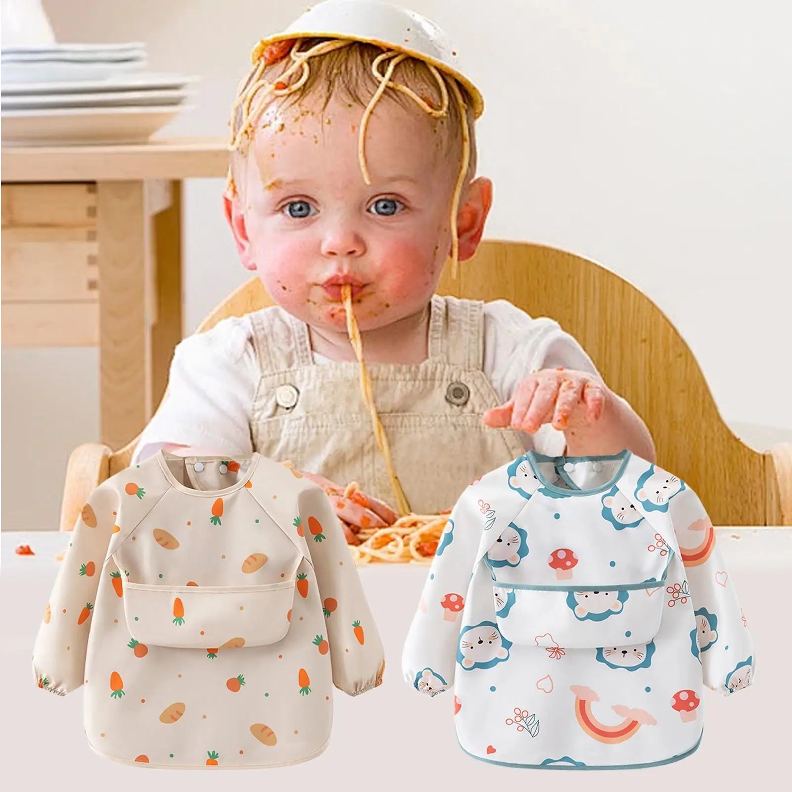 1.Effortless Cleaning Design: Designed with full sleeve protection, this long sleeve bib ensures meals are happy by preventing stains at arms and shoulders, allowing parents to concentrate more at bonding during breakfasts, lunches, or dinners without constant mark checks
