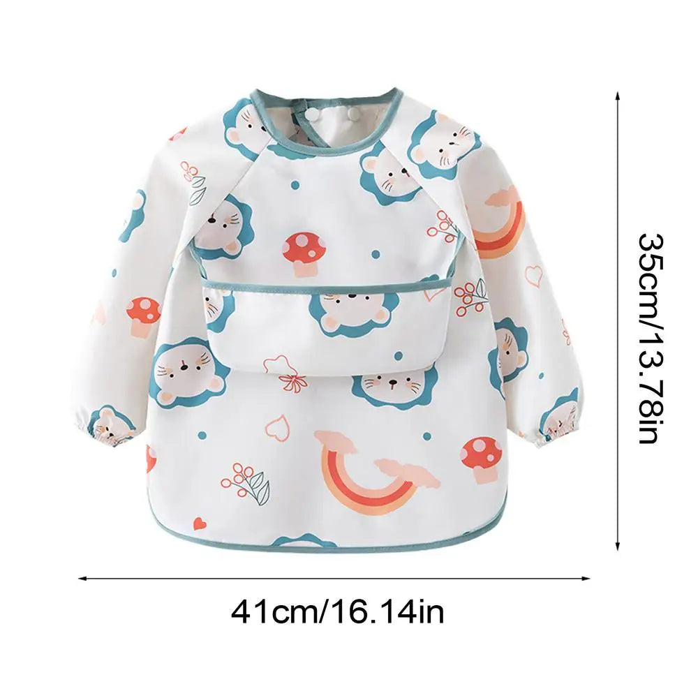 Baby Smock Bib Soft Full Sleeve Adjustable Weaning Smock Full Sleeve Toddler Eating Shirt Bibs For 6-36 Months Kids Girls Boys